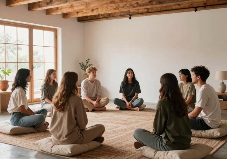 Supportive group work and guided therapeutic process fostering connection and shared healing.